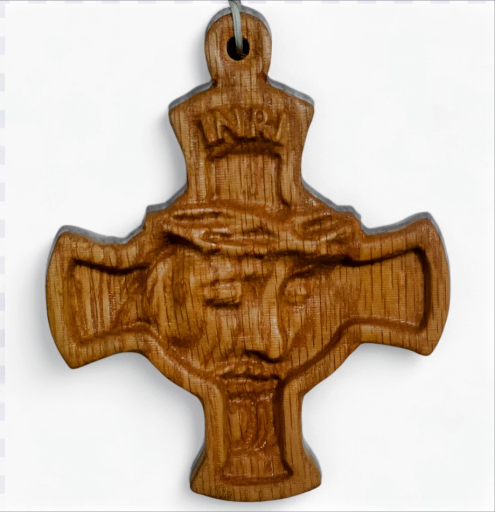 Ξυλόγλυπτος Σταυρός χειροποίητος με το πρόσωπο του Χριστού.Δεν είναι Αγιορείτικο εργόχειρο .